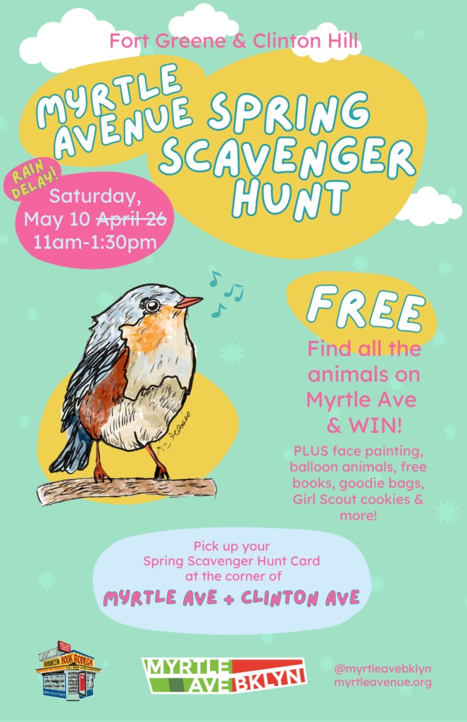 - Pick up a Myrtle Avenue Spring Scavenger Hunt card from our tent located at the corner of Myrtle Ave. and Clinton Ave.